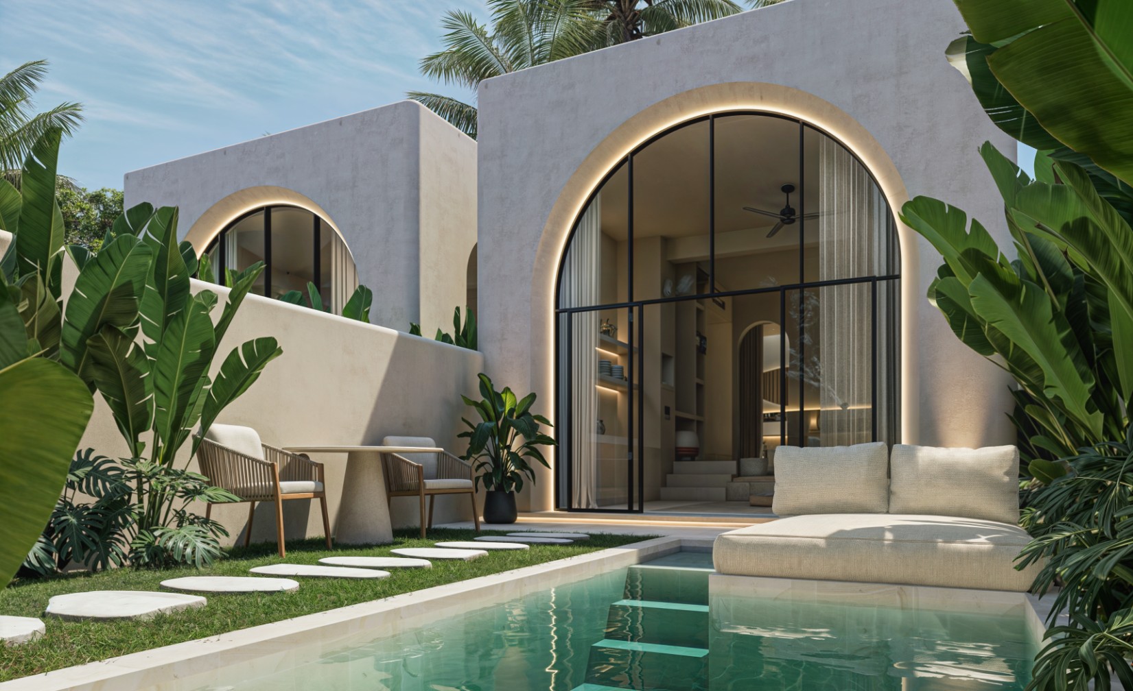 This boutique one bedroom villa in Uluwatu redefines tropical living with a modern loft inspired design and lush garden surroundings. A private pool framed by palms creates a striking arrival, while soaring ceilings and open layouts bring in natural light and fresh air. The seamless indoor-outdoor flow invites relaxed mornings, cozy evenings, and romantic moments under the stars. Designed for both personal enjoyment and high performing short-term rentals, this villa balances beauty with practicality, making it a true investment in Bali’s vibrant future.